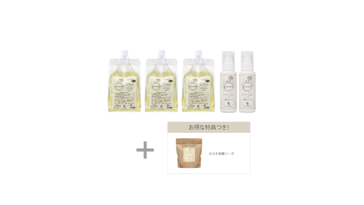 液体洗剤ステップは純石けんならではのソフトな仕上がりに。肌衣(マルチクロス)はやさしい肌触りで沐浴にもお使いいただけます。